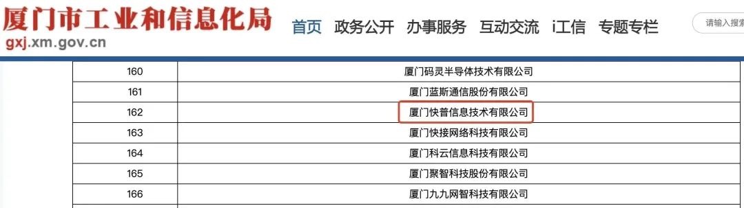 4月19日,廈門市工業(yè)和信息化局正式發(fā)布《2023年專精特新中小企業(yè)第一批認(rèn)定名單》,經(jīng)專家評審與綜合評估,快普成功獲得廈門市“專精特新”中小企業(yè)認(rèn)定。